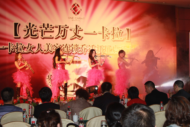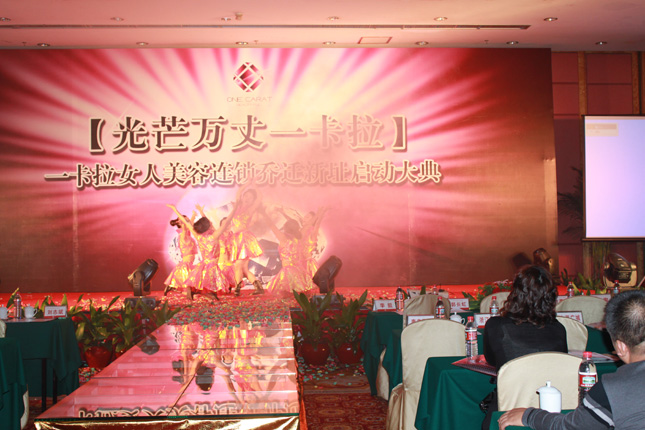 2009年12月12日,正值 “难忘今霄·一卡拉巴厘岛圣诞芳疗文化狂欢节”举行前夕,彩灯高挂、鹿铃叮噹,节日气氛浓郁的五星级亚洲国际大酒店迎来了全国各地一卡拉尊贵的合作方经销商、加盟店朋友。这是一个值得无比欢呼雀跃的日子,一个喜气祥和的日子,一个辞旧迎新、辉煌闪耀的日子!一张张熟悉的笑脸满怀着殷殷祝福,一个个亲切的身影道出欢乐的融融暖意,共同见证一卡拉全新蜕变这一历史性时刻! 随着各界领导、公司董事高层、嘉宾及日本友人的入座,身着红、蓝色裙装的精灵一曲欢快跳跃、震动视听的提琴协奏,拉开了 “光芒万丈一卡拉”一卡拉女人美容连锁乔迁新址启动大典序幕。 一曲一卡拉企业之歌《绽放》,唱响了一卡拉人心中的梦想,演绎着一卡拉人的七彩人生。它展现了一卡拉人无私、无畏、无惧、无惑、勇敢、坚韧不拔的高尚情怀!展现了一卡拉人宽容、博大、仁爱、平和、谦良、以直报怨的广阔胸襟!展现了一卡拉人微笑观风浪、淬炼更坚强的钻石精神! “能力创世界,璀璨必可达”的声音在大厅久久回荡,豪气万丈、荡气回肠,表达着一卡拉全体员工众志成诚、为芳疗事业倾尽全力奋斗的决心和风雨无阻的坚定脚步。 一卡拉全新品牌——“ONE CARAT”、“紫缤”、精品系列吉祥三宝、活能铂金醒肤仪、先进仪器髋骨调理仪二代全新亮相,闪亮登场,受到全场关注与喜爱! 七彩缤纷,耀眼绽放!本次一卡拉乔迁新址启动大典,只是全新里程的第一步,在未来的日子里,一卡拉必将脚踏实地,以坚毅不拔的精神、专业进取的态度、全球芳疗发展的视野,在中国芳疗领域里纵横驰骋,传播芳疗文化, 用最优质的产品、最全面的品牌建设、最安全的运作平台,给千千万万中国女性带来美丽与健康,与优秀经销商、美容会所一起,缔造芳疗世界的传奇,迎来鲜花绽放、争奇斗艳的盛世春天!