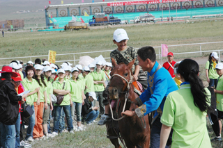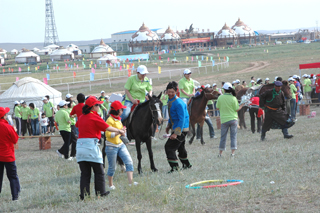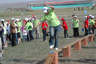 驰聘千里,英姿飒爽,远离都市喧嚣,放开胸怀体会草原雄风,挥洒汗水与激情,大展身手!草原就是天然的竞技场,一连串草原智勇通关游戏,自有与众不同的风味,走独木桥、骑马……趣味横生,快乐无限!